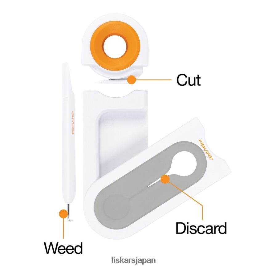 - fiskars オールインワン ビニール草むしり道具>ビニール カッター、除草機、内蔵の廃棄物容器が含まれており、ビニール クラフトをよりきれいに簡単に行うことができます。