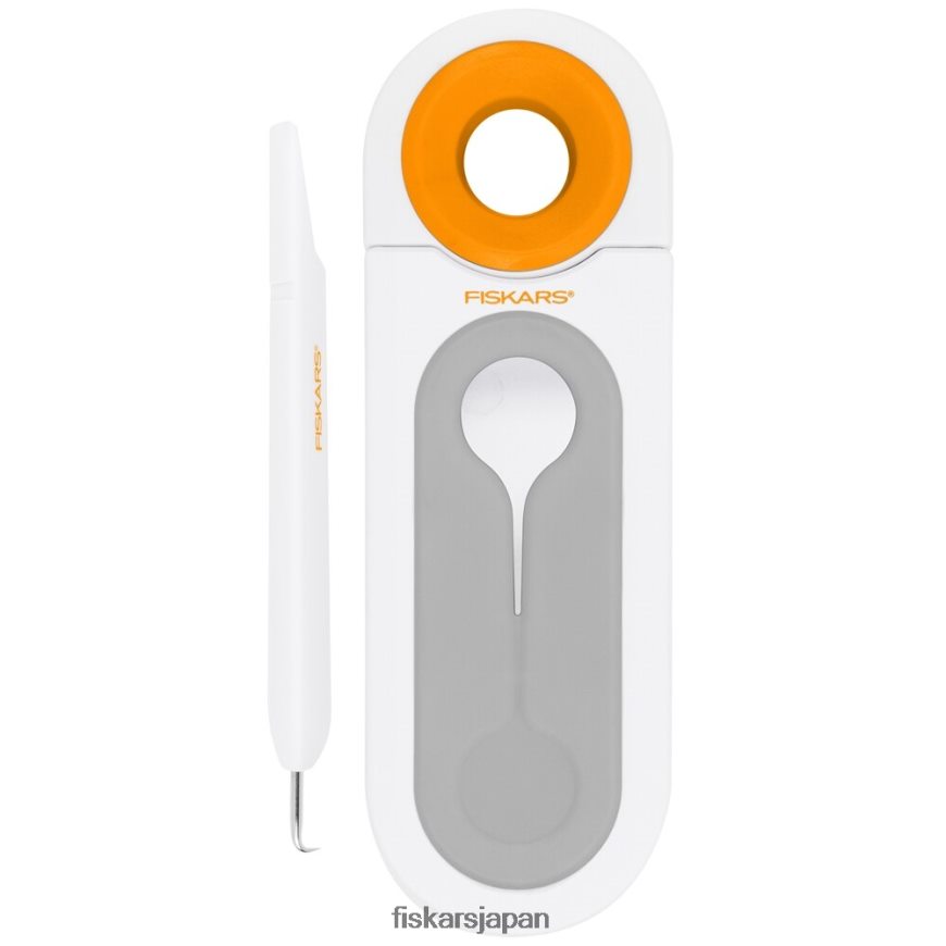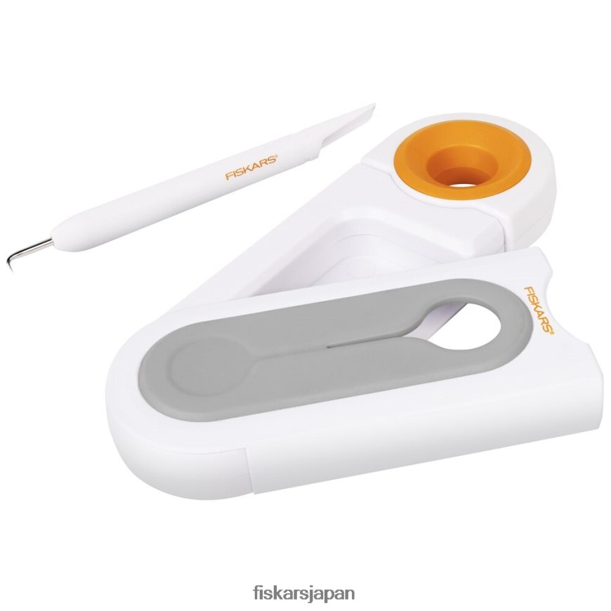 ビニールで制作する人にとって必須のツールであるコンパクトなフィスカースのオールインワンビニール除草ツールは、ワークスペースをすっきりさせながら、ネガ部分を切断、除草、廃棄します。カッターと除草機はツール内に安全に保管されます。このカッターは、ロール状のビニールや転写テープの中を滑らせる高級スチールの刃と、ハングホールとしても機能するソフトグリップ強化のリングスタイルのハンドルを備えています。除草機の先端は耐久性のある硬化ステンレス鋼でできており、ネガ部分を簡単に除草できます。除草機を使用して、除草スロットにマイナス廃棄物を直接置きます。内蔵の容器が廃棄物をきちんと収集し、作業面 (そして手!) にビニールの廃棄物が付着しないようにします。完了したら、除草カバーを回転させて廃棄部分を処分するだけです。オールインワンのビニール除草ツールには、ビニールを除草スロットに廃棄するときに所定の位置に保持する滑り止めの足が付いています。