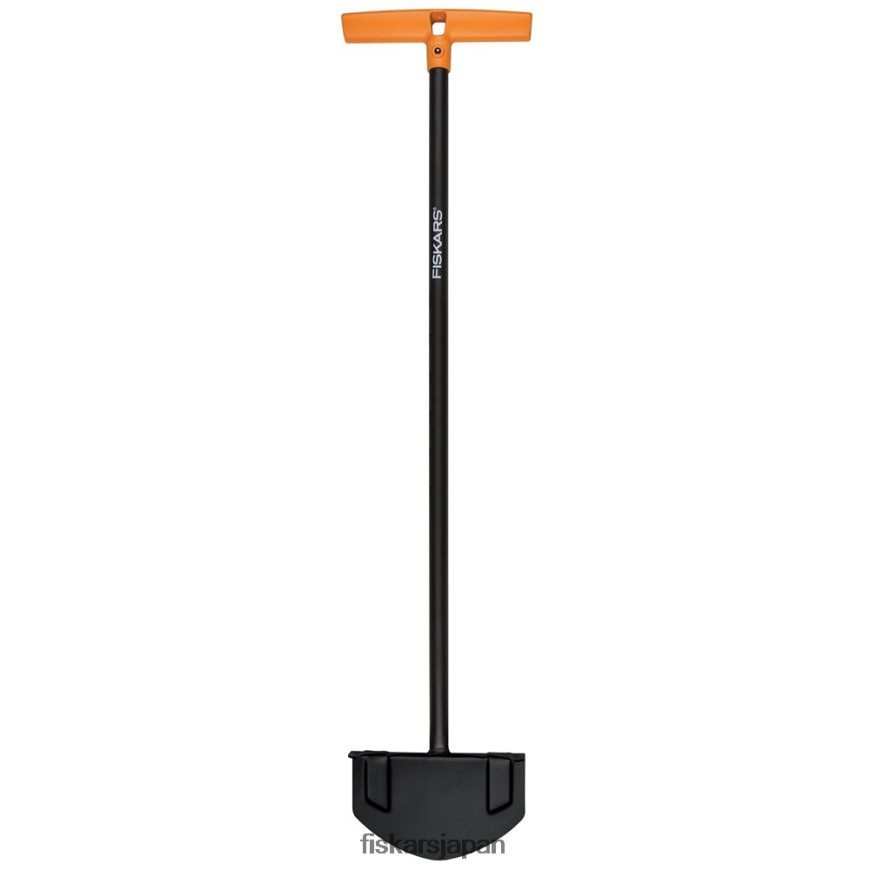- fiskars スチール製の長い柄のエッジャー は、溶接された 14 ゲージの硬化刃が特徴です。優れた耐久性を実現するスチールブレードと 18 ゲージスチールハンドル