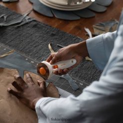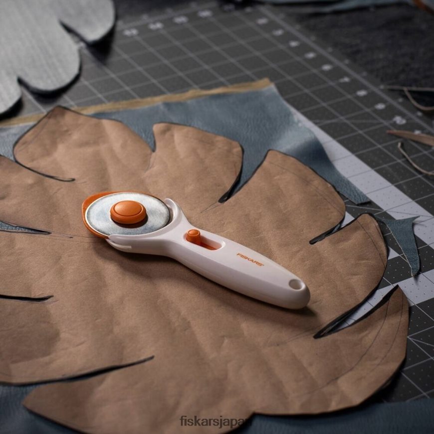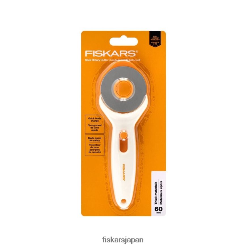 - フィスカルス スティック ロータリー カッター(60 mm) は、中綿やキャンバス、デニム、レザーなどの厚い生地のスムーズなカットに最適です