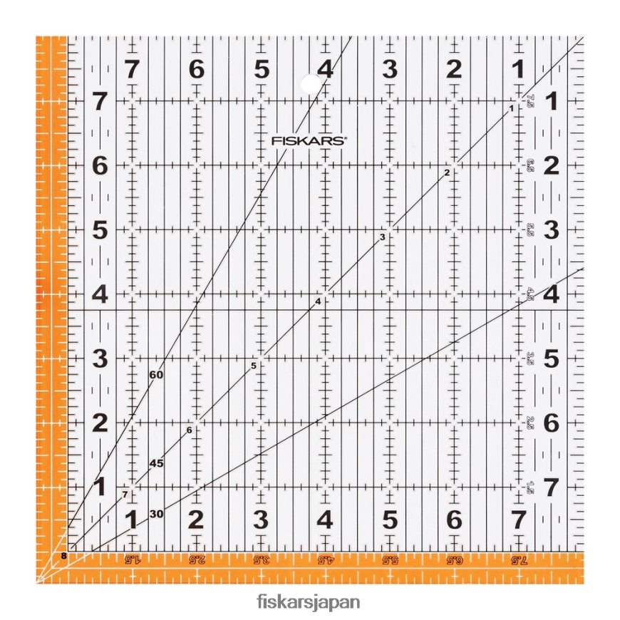 キルター向けに特別にデザインされたこの正方形のアクリル製定規は、強調表示された縫い代と読みやすいグリッド線を備えており、布地の完全な正方形をこれまでより簡単にカットできます。 30 度、45 度、60 度のライン インジケーターが含まれています。